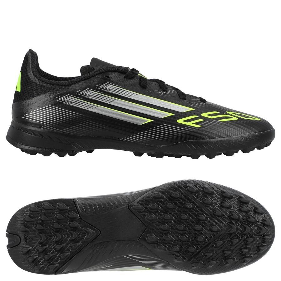 adidas F50 League TF Electric Stealth – Sort/Sølv/Grøn Børn