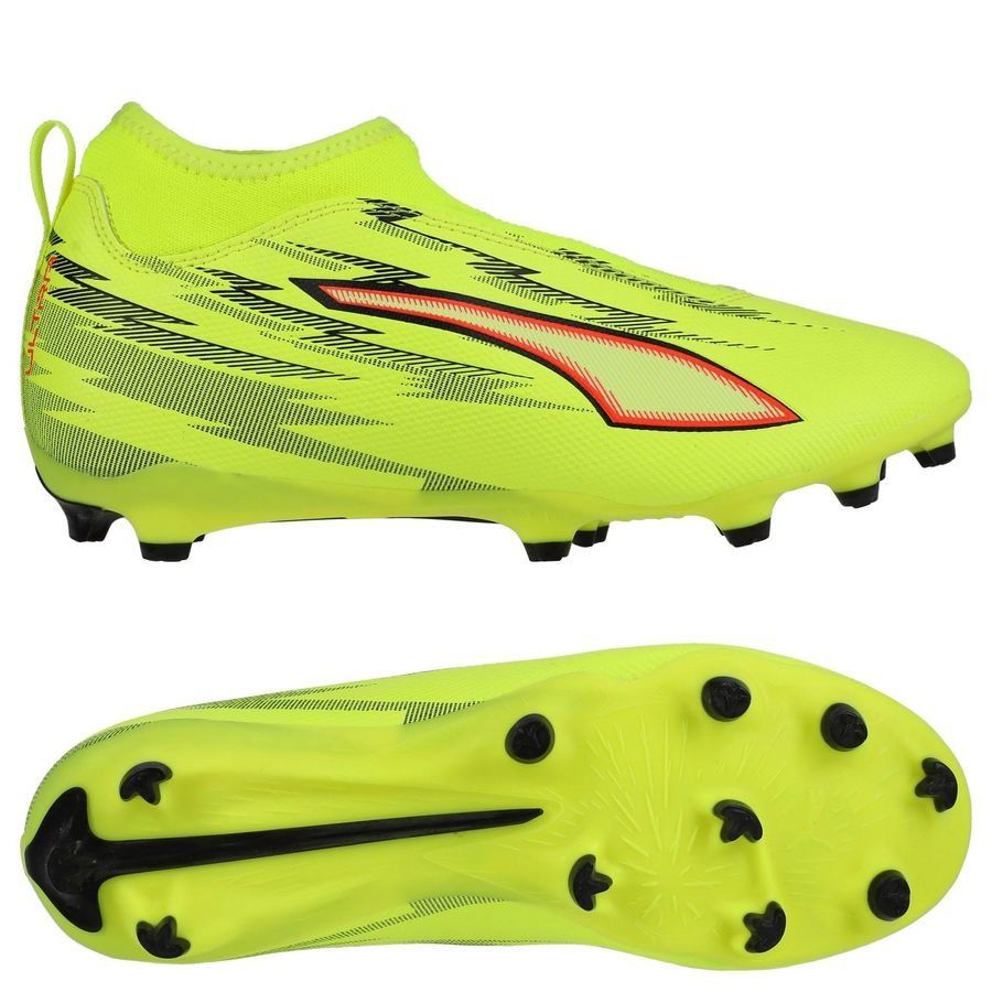 PUMA Ultra 6 Match Laceless + FG/AG Unleashed – Gul/PUMA Sort/Rød/Neon Børn